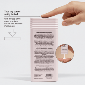 - Fully recyclable packaging and made with PCR (post-consumer recycled) material